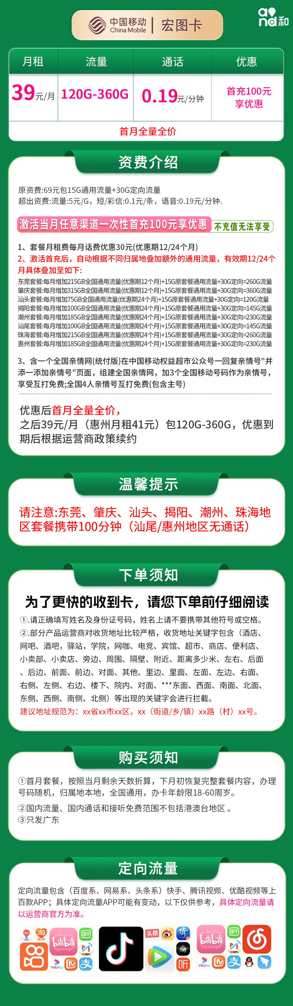 广东移动宏图120卡