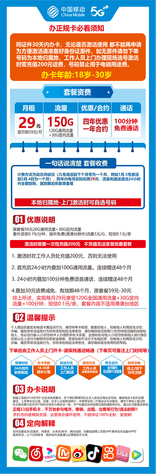 广东东莞移动卡150G
