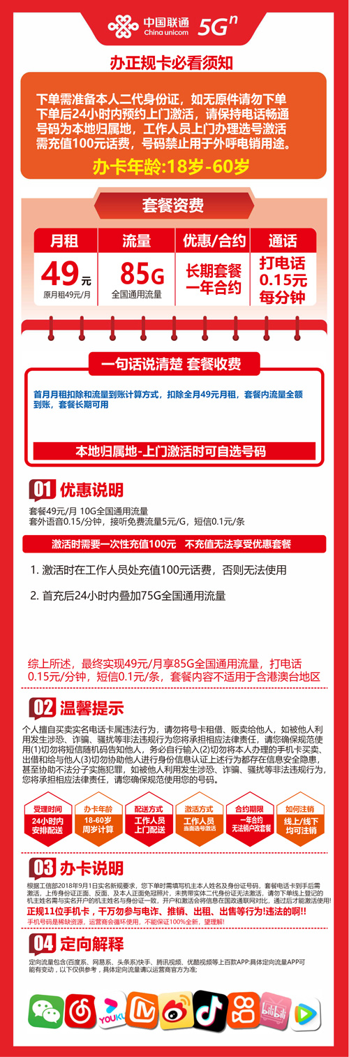 🧧 (无车费)移动流量卡