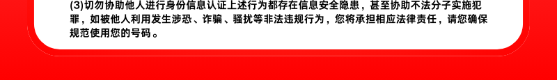 公安部提示:请勿将已登记您本人身份证信息的号卡用于诈骗等不合法行为,请勿将号卡进行转卖、租借他人使用。