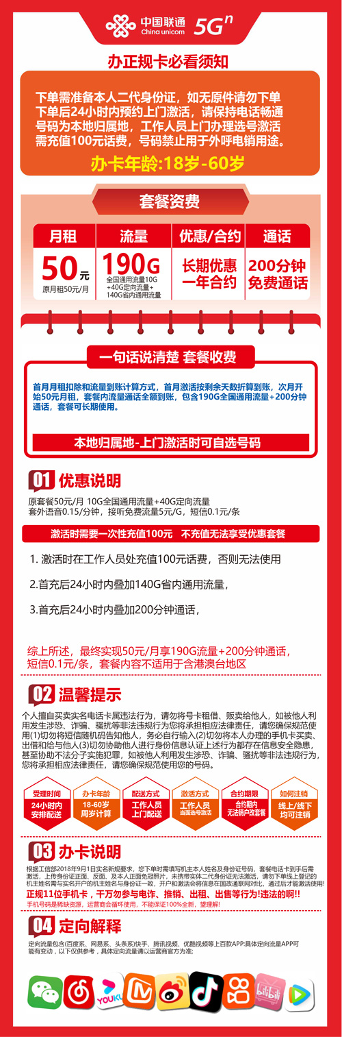 广东东莞联通卡190G