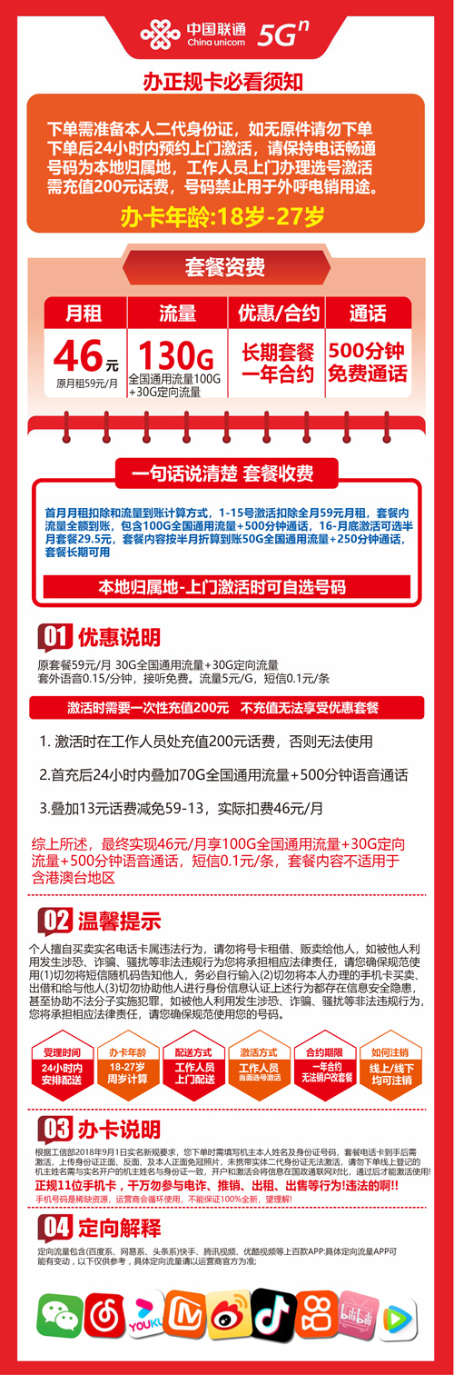 福建福州联通卡100G