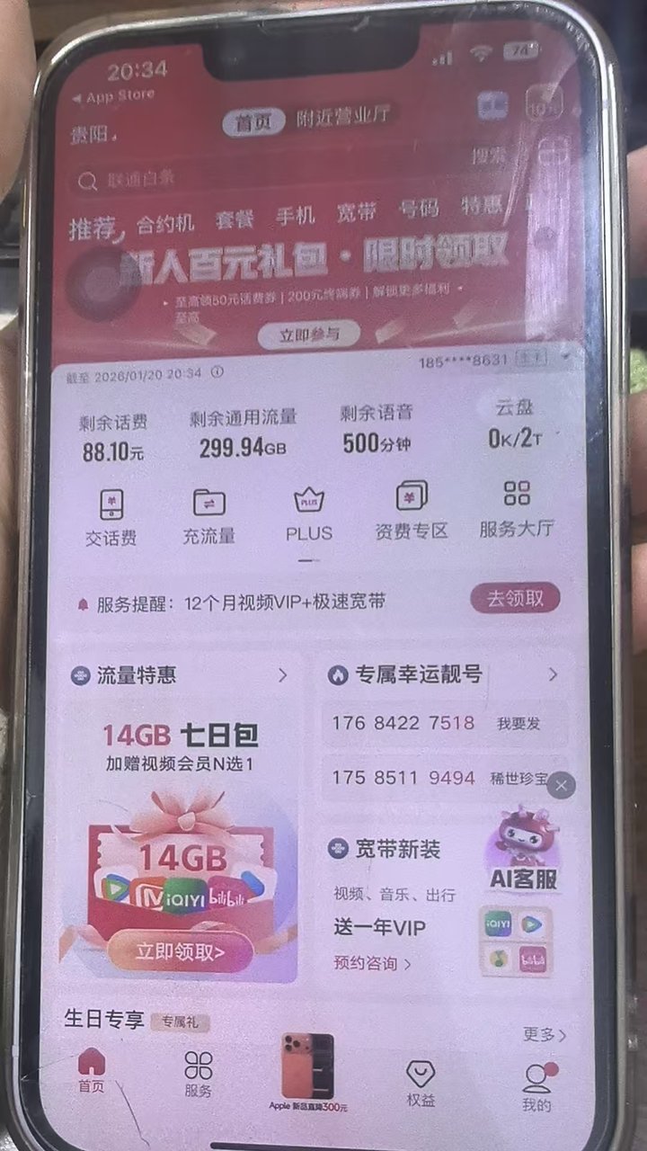黑龙江联通300G+300分钟