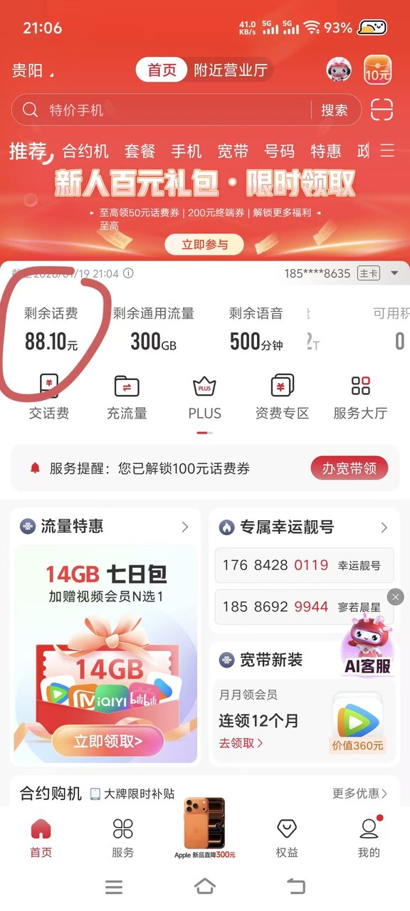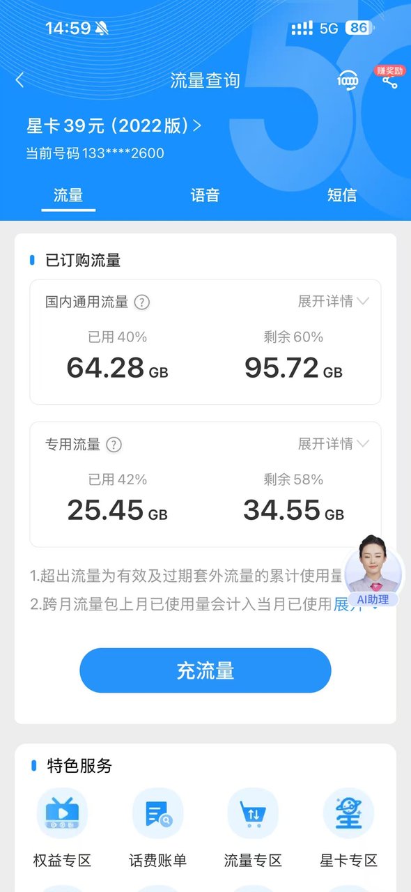 资费便宜,流量非常多,通话时间也多,优惠期间四年,过期还能续,办过最好的一张流量卡[强][强][强]五g网速,我在乡镇上不太稳定,4g网速也够用了