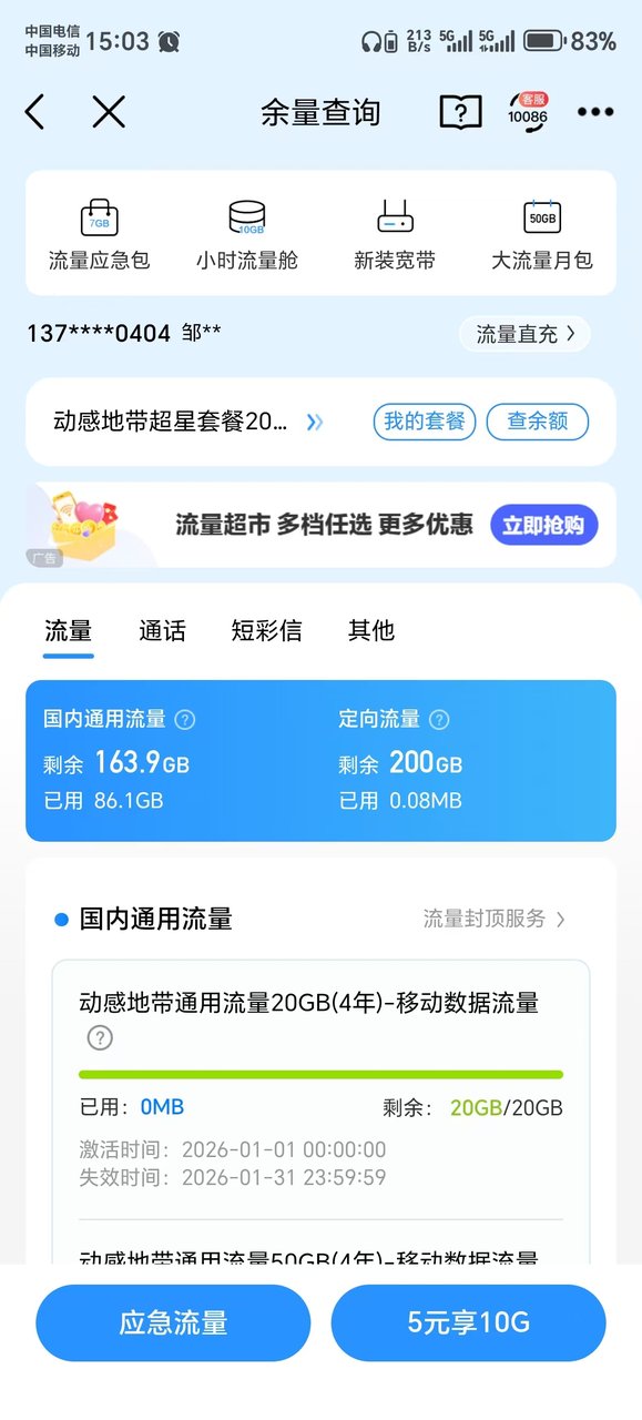 移动超星卡18包200G