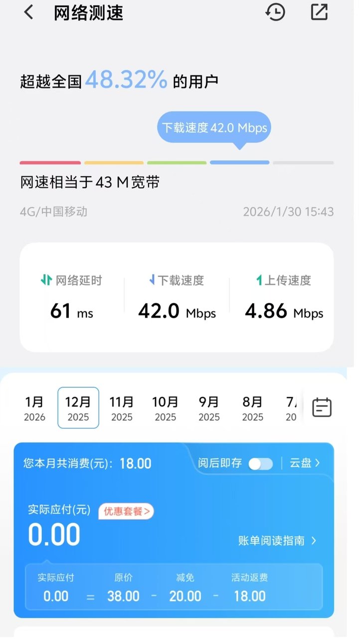 虽然有些慢,但是卡是真的香........流量根本用不完,月租20元的动感地带
