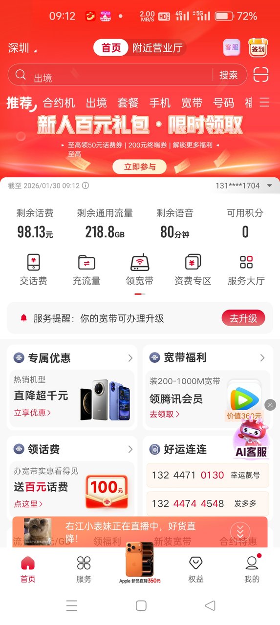 申请开卡时候出了点问题,客服很快解决了,到手用了几天,网速挺好