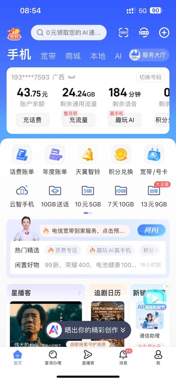 #电信星卡,自己激活