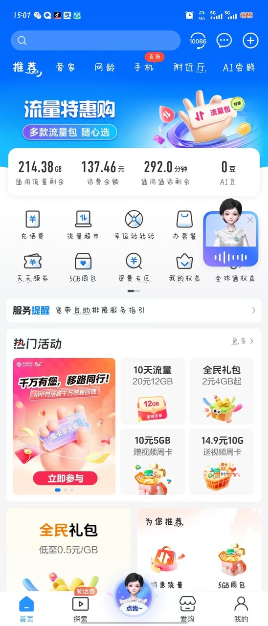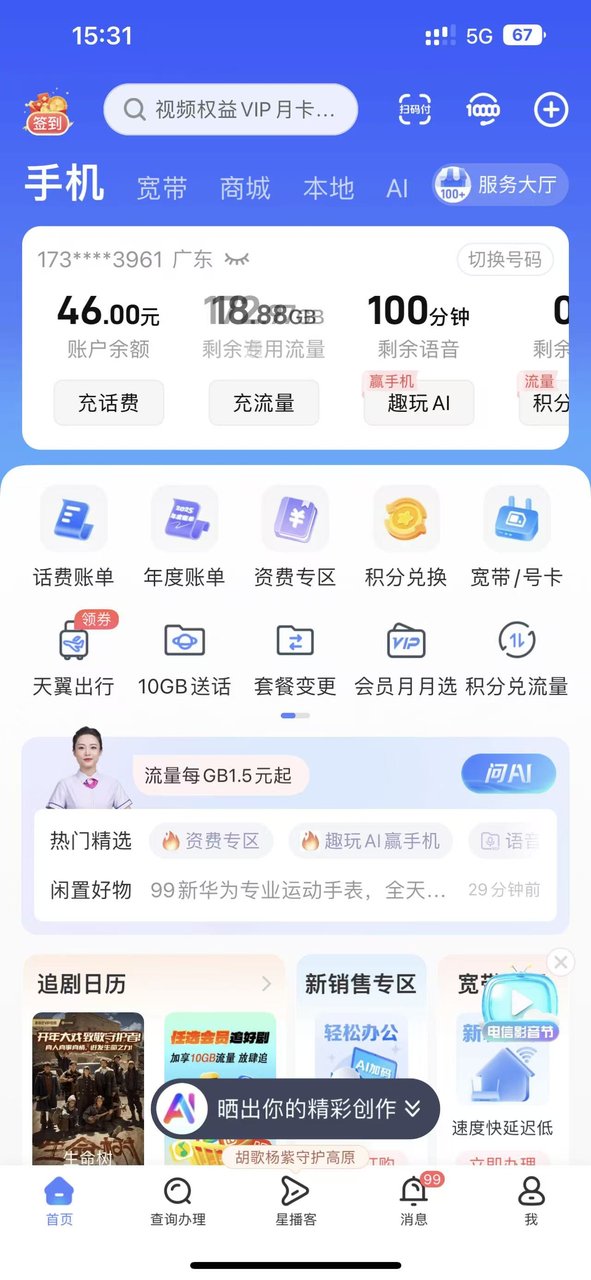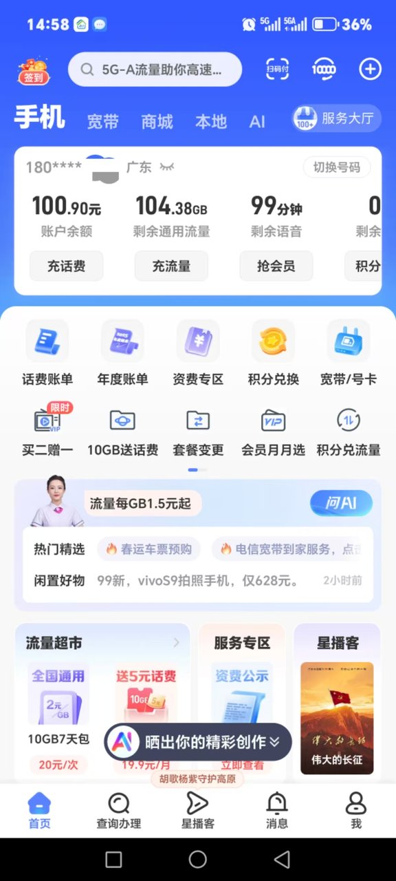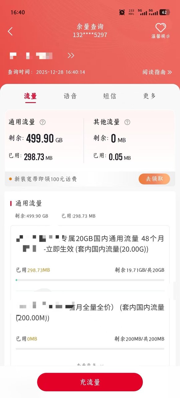 办了广东电信靓仔卡185G,参与活动又每个月送了100G,29元 285G~😱