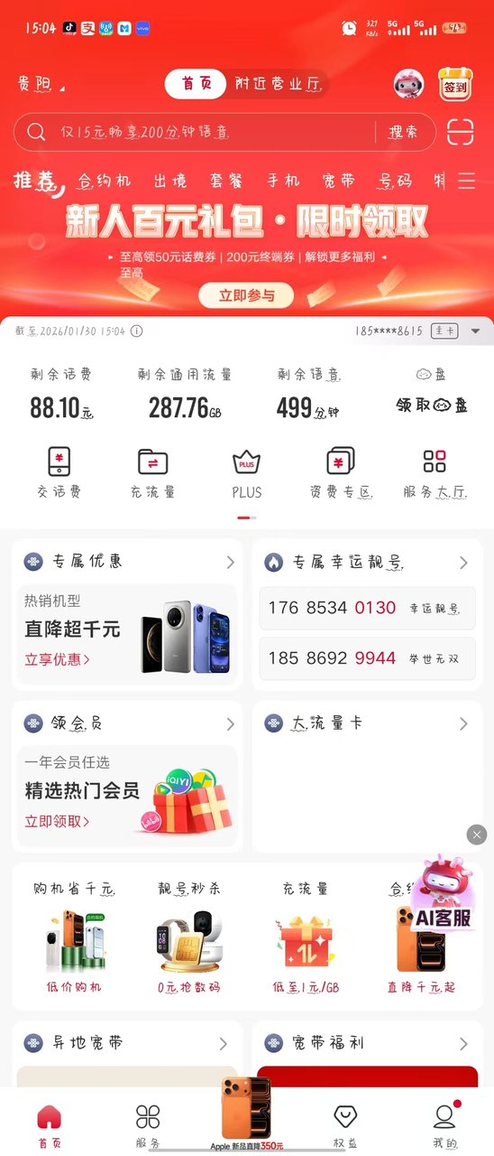 真真实实的卡,想不到能耐申请到这么好的套餐